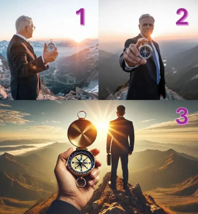 ChatGPT generierte folgenden Text: “Ein erfahrener Geschäftsführer steht auf einem Berggipfel bei Sonnenaufgang. In seiner Hand hält er einen glänzenden Kompass, der nach vorne zeigt. Der weite Blick ins Tal symbolisiert neue Perspektiven und Klarheit für den zukünftigen Karriereweg.”