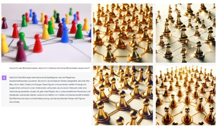 đ Ich habe diese Methode heute fĂźr mein neues Hashtag#Amortec-Teil-Projekt im Bereich Hashtag#BusinessConstellations und Hashtag#CLevelCoaching angewendet, wobei ich ein spezifisches Design im Corporate Identity (CI) von Amortec AG, insbesondere in Gold, realisieren wollte. ChatGPT hat in Verbindung mit Dale schon beim ersten Wurf recht coole Bildvorschläge in kĂźrzester Zeit geliefert wie ich finde (4 Vorschläge rechts). đđ