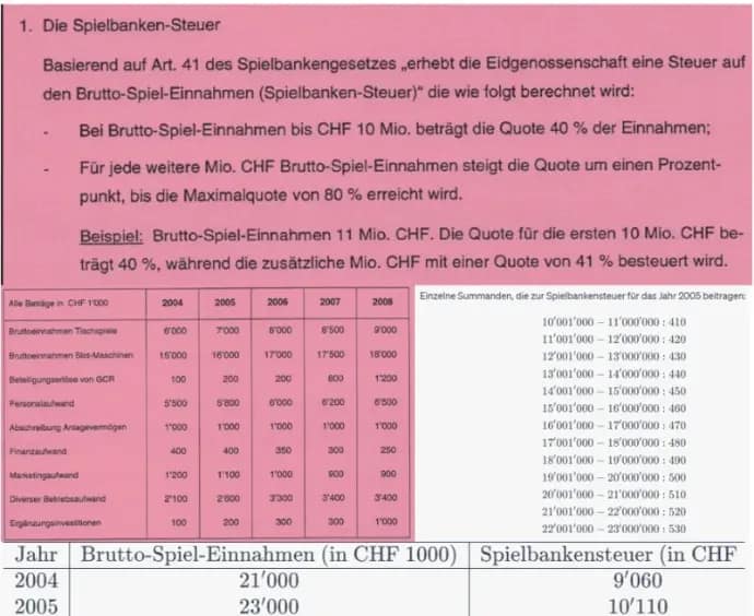 Insbesondere die Berechnungs-Aufgabe der Spielbanken-Steuer aus einem Text ist doch recht komplex: