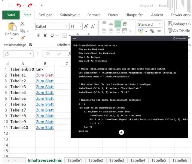 Ich habe CFOGPT z.B. die Aufgabe der Erstellung eines Inhaltsverzeichnis fĂźr Monster-Arbeitsmappen gestellt: “Ich habe ein Excel-File mit vielen Arbeitsmappen. Kannst Du mir ein VBA-Skript schreiben, dass in der Arbeitsmappe an erster Stelle ein neues Tabellenblatt einfĂźgt und dort wie ein Inhaltsverzeichnis mit Hyperlinks einfĂźgt. Jedes Tabellenblatt soll im Inhaltsverzeichnis Ăźber den Hyperlink direkt auf das jeweilige Tabellenblatt erreichbar sein.”